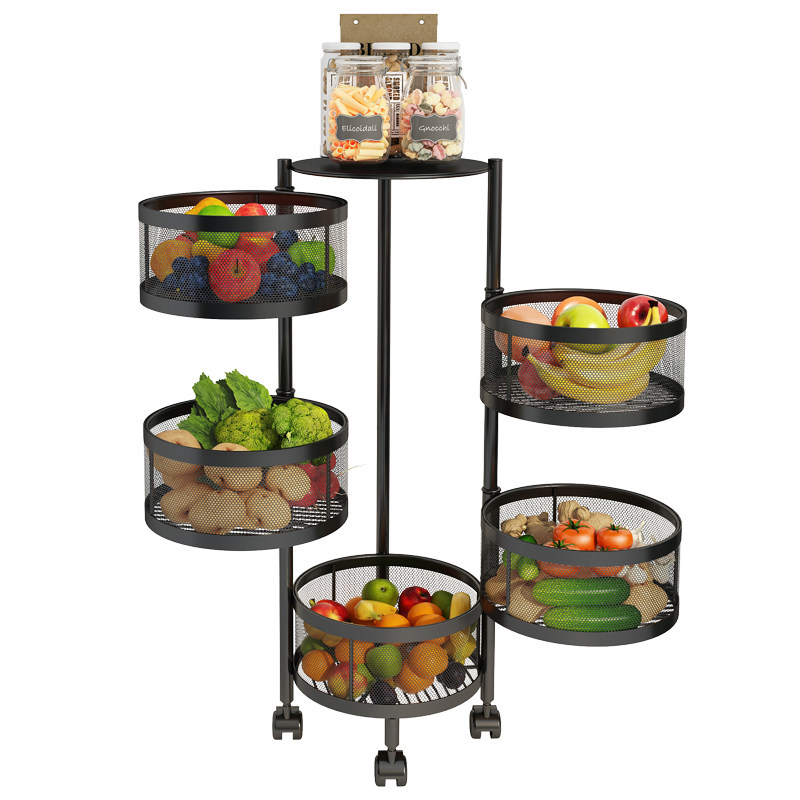 Kitchen vegetable rack multi-layer floor-to-ceiling rotatable vegetable basket fruit rack sundries storage basket supplies