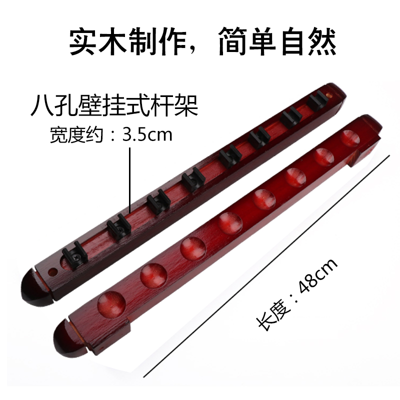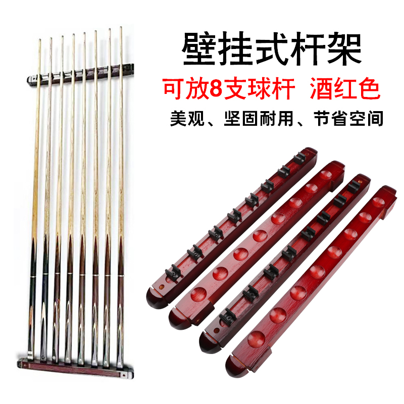 Billiard club rack wall hanging snooker room burgundy solid wood bar 8 holes put pole bracket billiard club supplies accessories