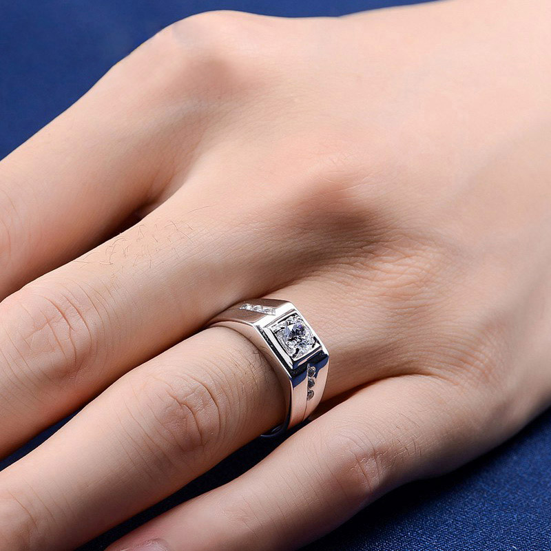 Chow Tai Fook Pt950 platinum diamond ring White gold diamond ring classic men's 18K custom wedding ring