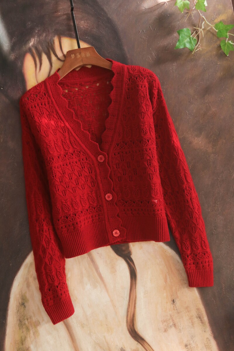 Word-of-mouth factory implored thick French style cashmere hook flower V collar knit cardiff ME871