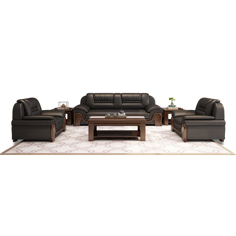 Office sofa leather simple modern Chinese solid wood reception tea table combination business reception room sofa three people
