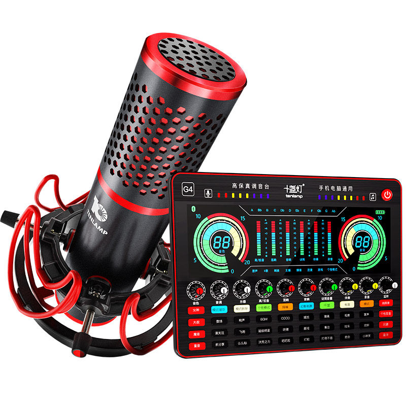(Star recommendation)Ten lights live broadcast equipment Full set of sound cards Singing mobile phone special anchor recording set Sound repair artifact equipment microphone Computer desktop all-in-one universal net red microphone