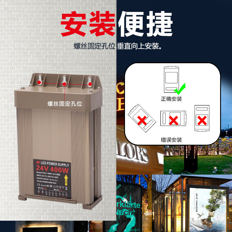 Outdoor rainproof power supply 24V400W anti-shielding anti-interference switching power supply Wall washer glow tube point light source
