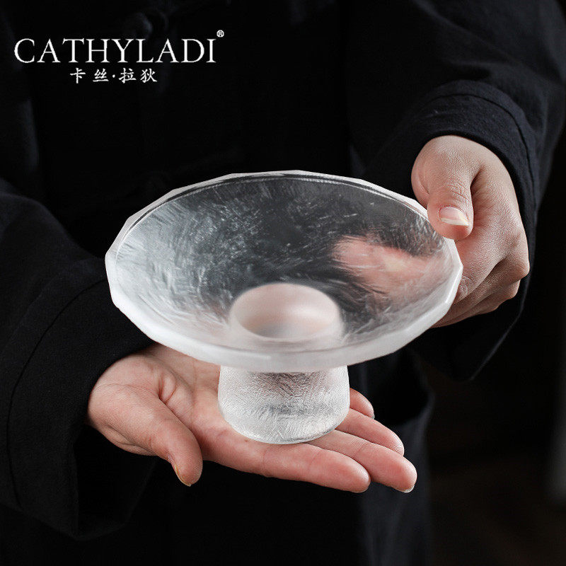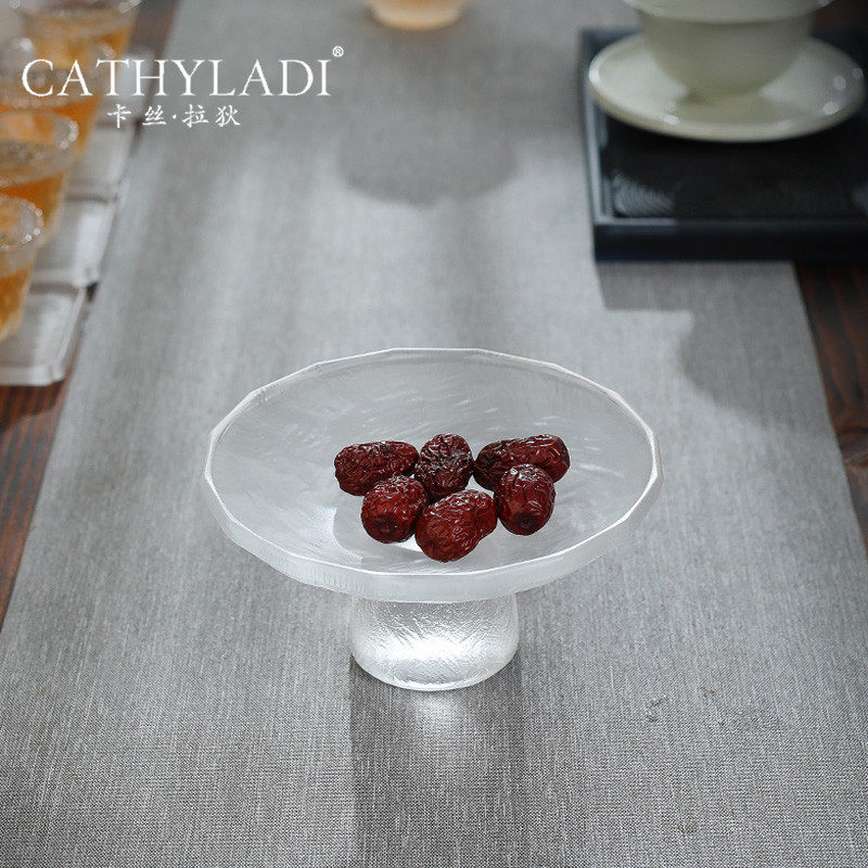 Cathyladi New Chinese Fruit Plate Snack Plate Tea Ceremony Accessories Home Living Room Simple Modern Glass Ornaments