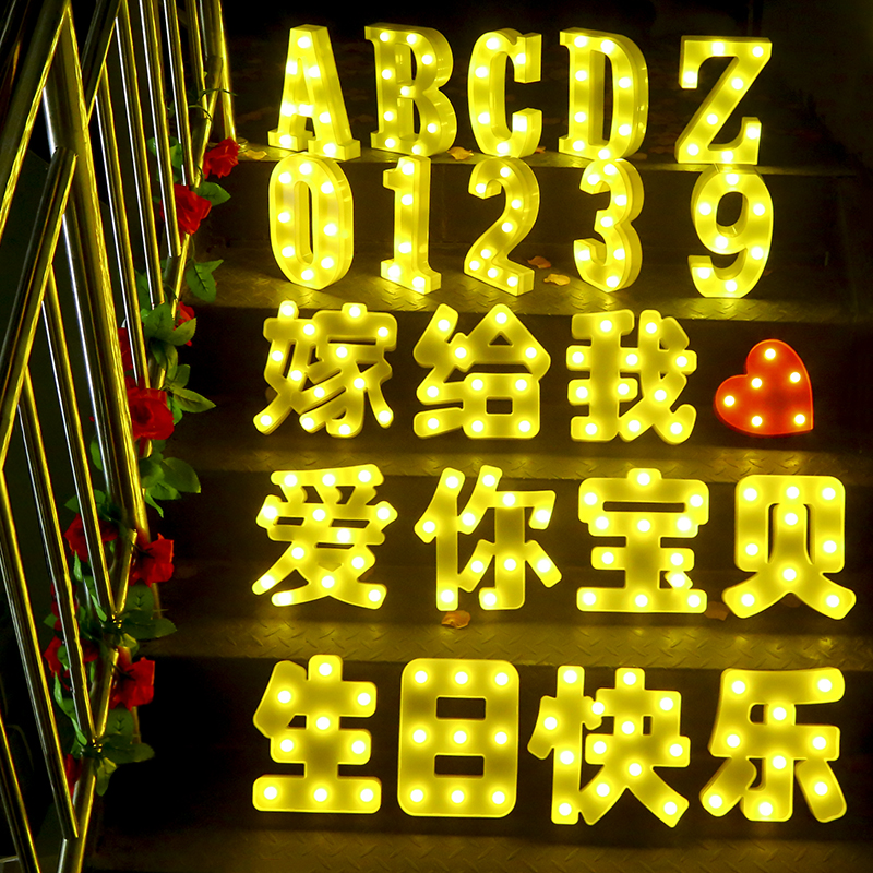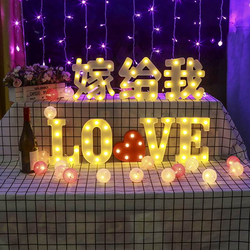 Letter lamp A ~ Z (Unit Price) Digital lamp 1 ~ 9 (Unit Price) Caring lamp I Heart U 520 1314 LOVE Happy Birthday Baby married to me (han