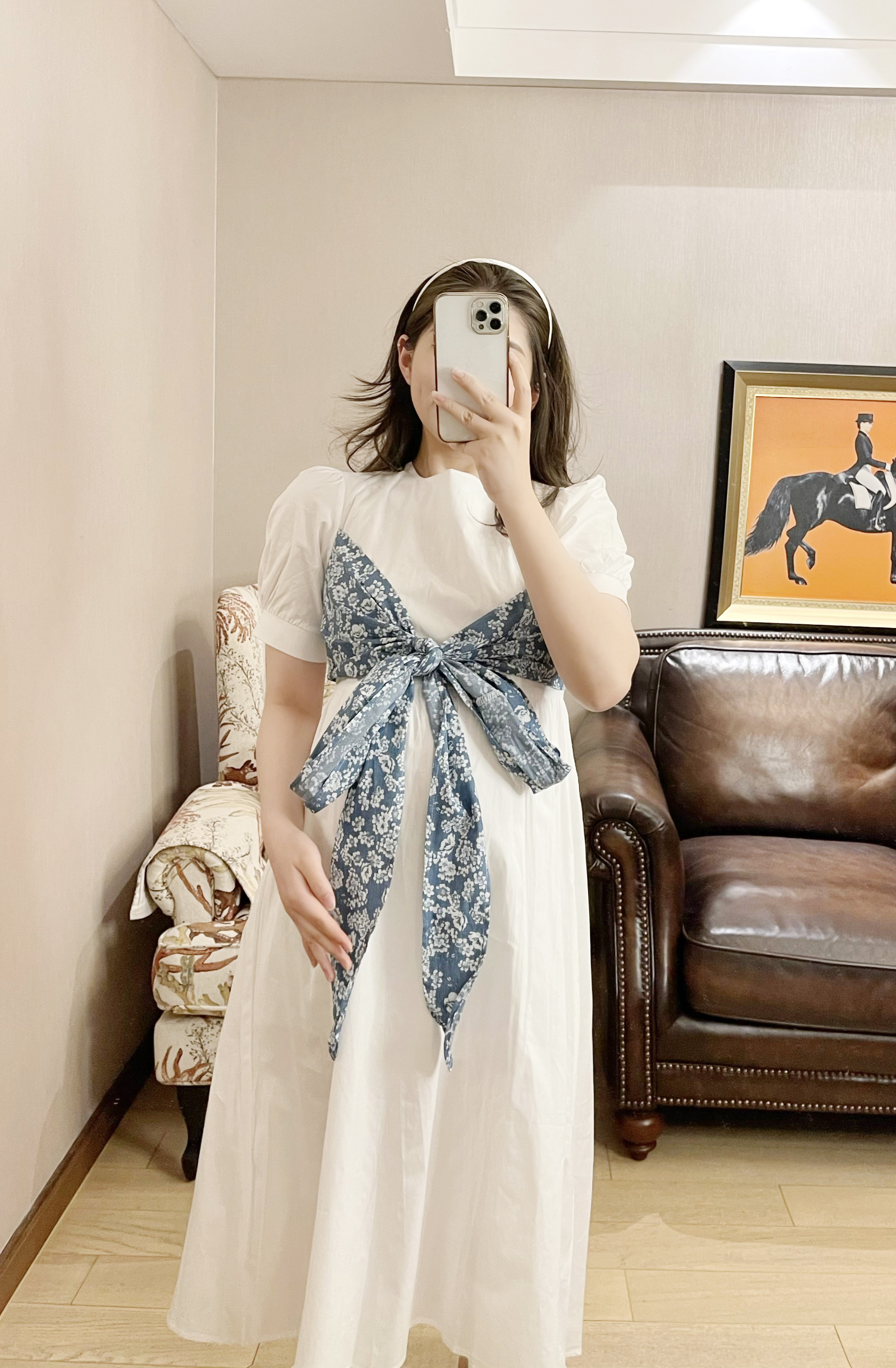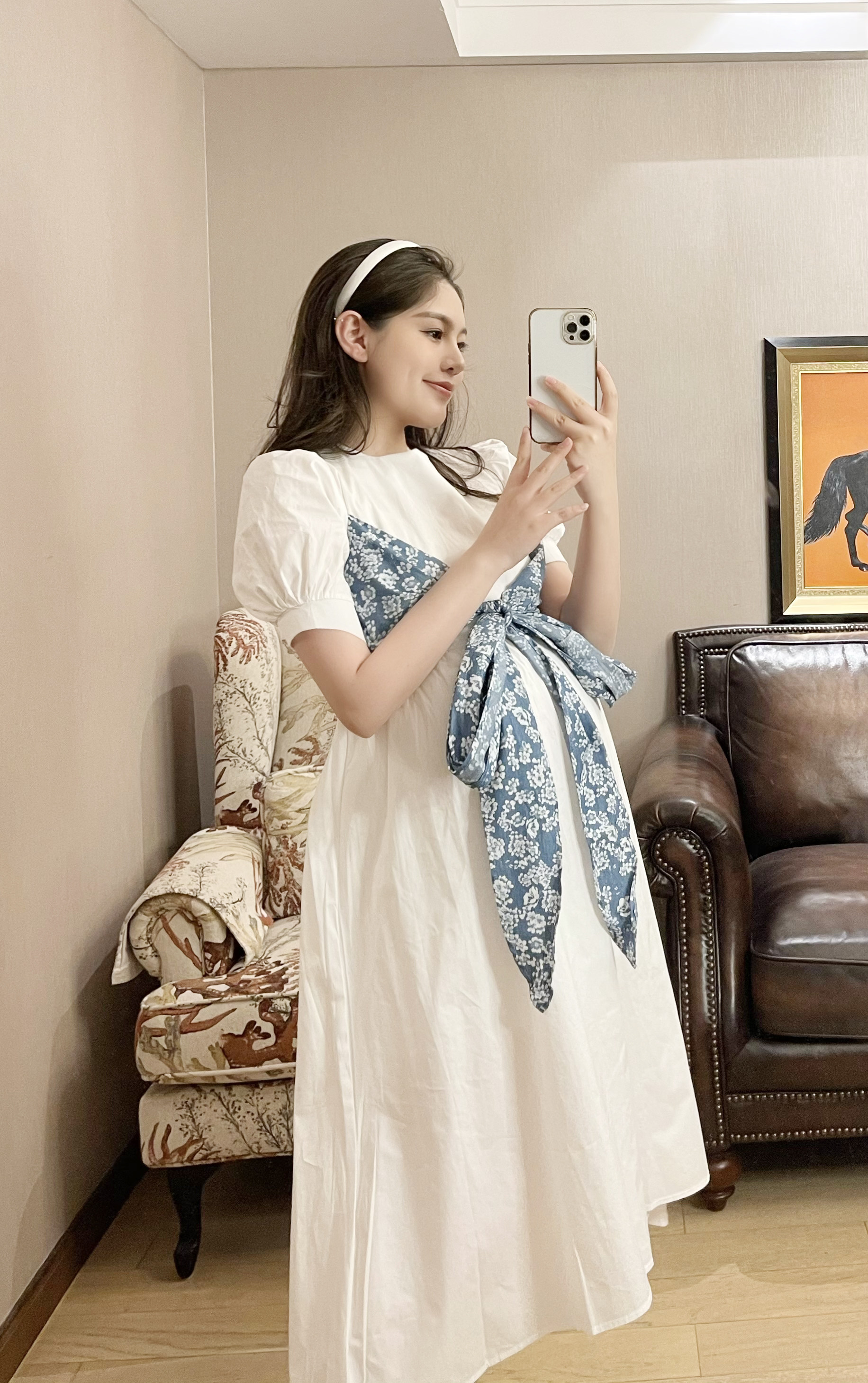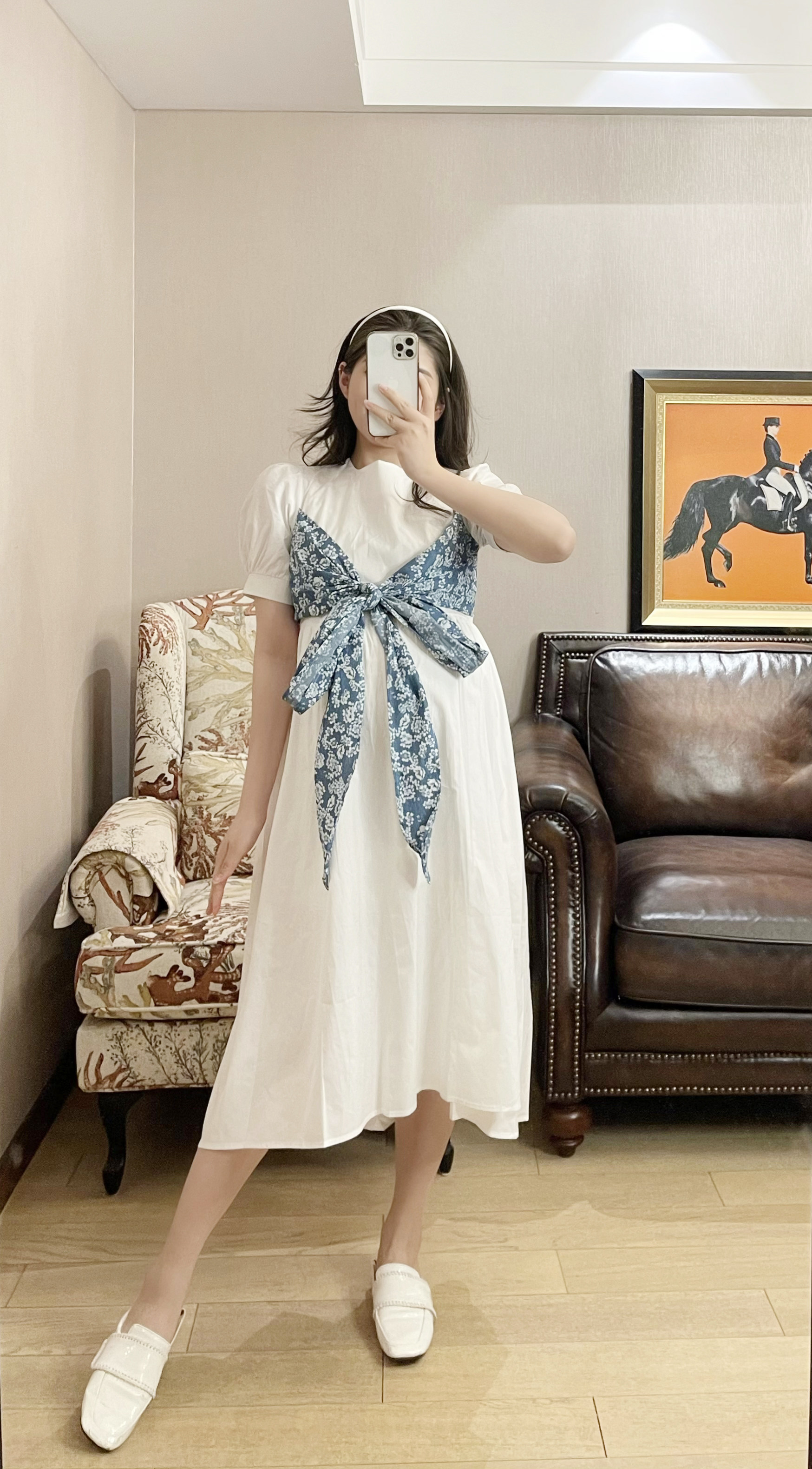 PEIPEI Pregnant Women Wear New Mom Short Sleeved Summer Dress Relaxing Large Couple Butterfly Bow