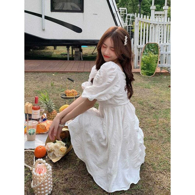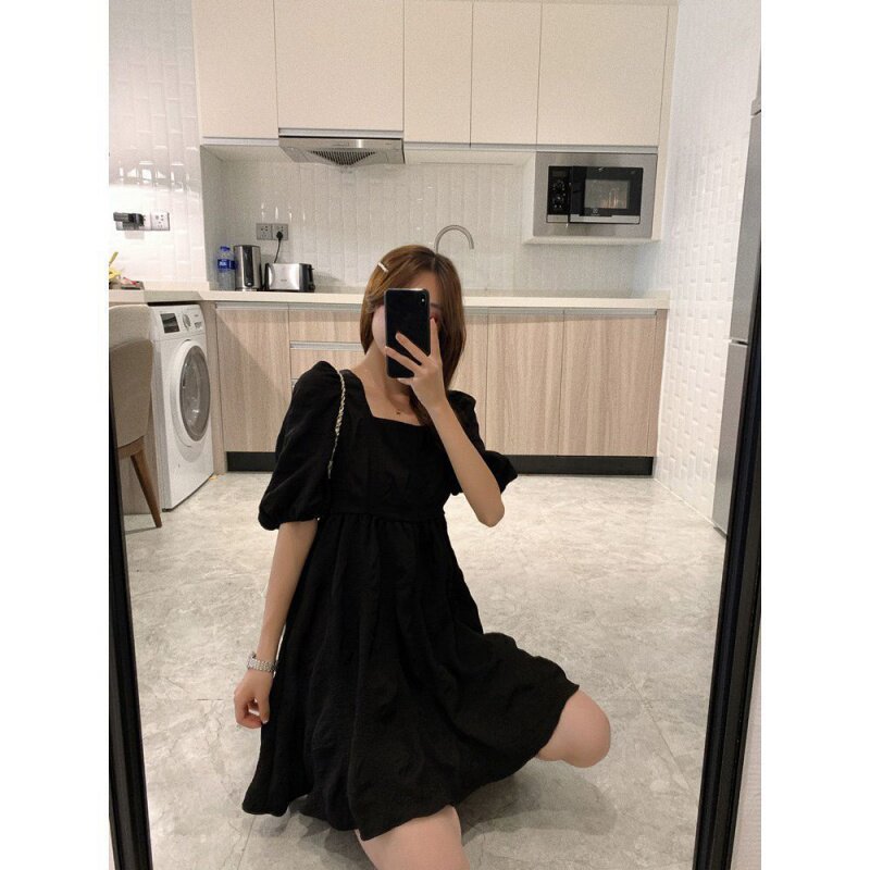 French white puff sleeve dress small summer new square-neck short waist-reducing age slim doll skirt