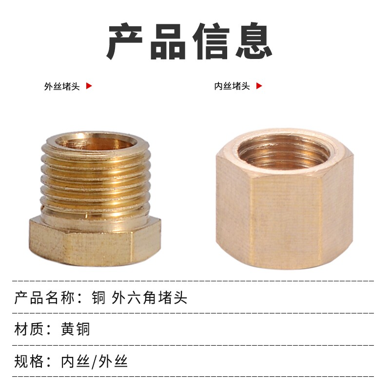 All copper outer wire plug inner wire plug cap 4 points 6 points water pipe stuffy head pipe plug cap copper plug head