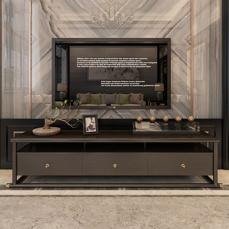 Light Luxury Simple TV Cabinet Coffee Table Storage Cabinet Solid Wood Modern Living Room Slate Painted Villa Lin's Furniture Customization