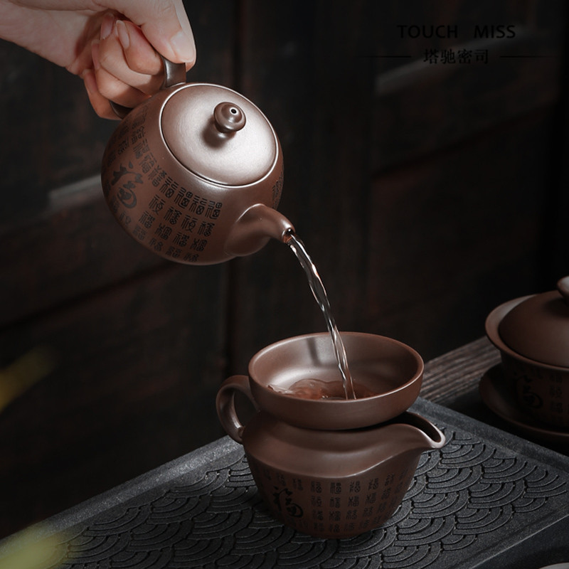 Touch Miss Chinese style purple sand tea set simple atmosphere light luxury gift kung fu complete set of custom raw ore sand teapot
