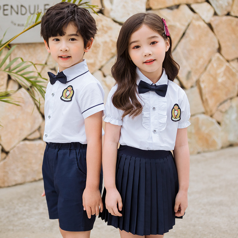 Kindergarten Landscaped Summer Clothing Inglém Wind Shirt Suit Big Class Graduation Clothes Elementary School Students Class Clothes Summer Children's School Uniforms-Taobao