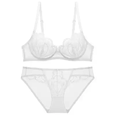 French red sexy underwear suit big chest show small super thin lace gather transparent ladies underwear