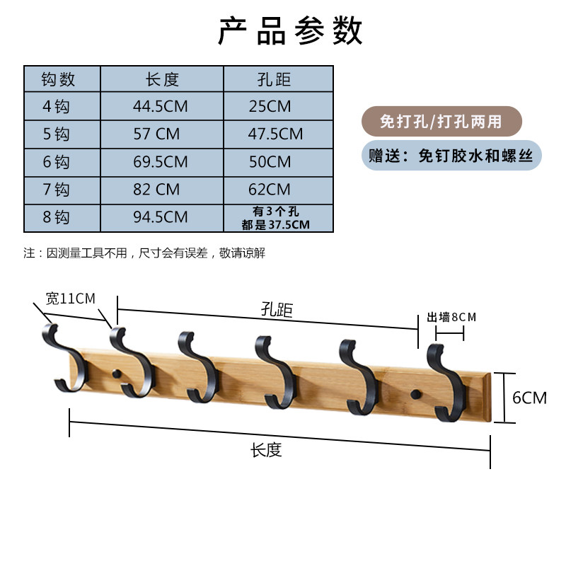 Hangers On the back wall of the door Wall-mounted row hook Bedroom door entrance Bamboo and wood clothes hook Fitting room coat hook
