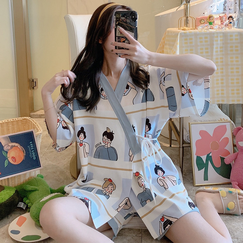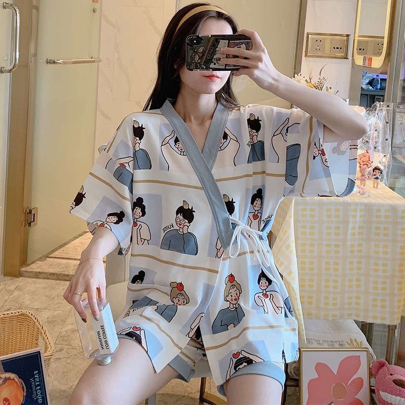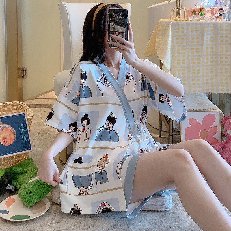 Angelina zl pajamas women's summer kimono cotton short-sleeved cute net red popular cotton homewear suit