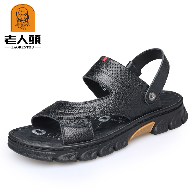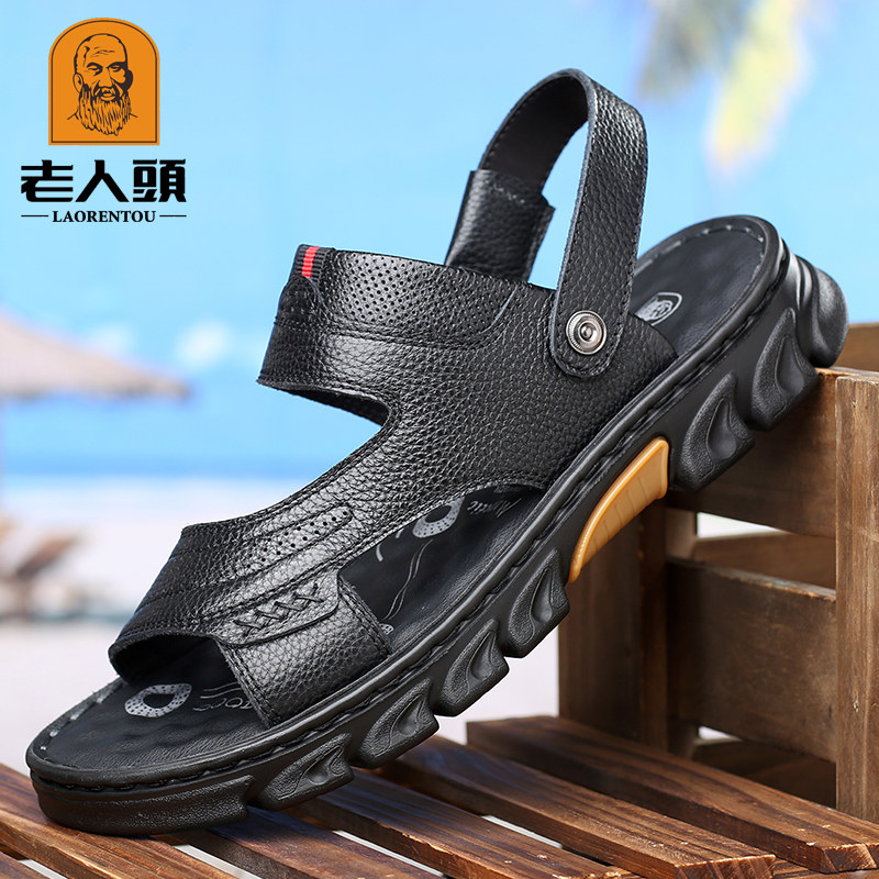 Old man head sandals 2021 summer new leather breathable casual leather sandals thick bottom non-slip men's beach shoes men