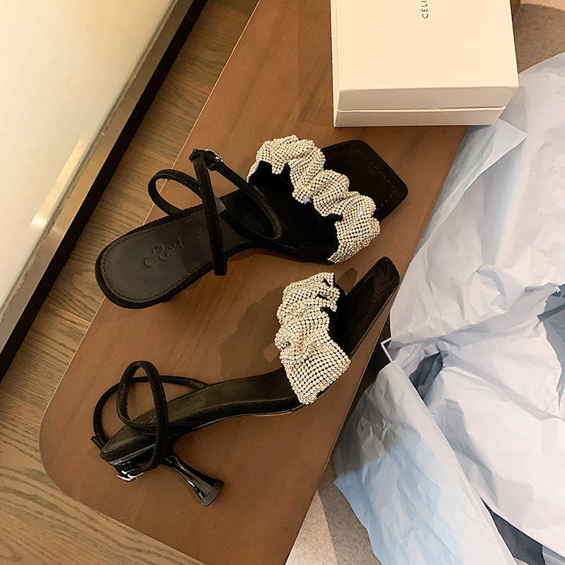 Forest Great Strangeness ~ Water Drill High Heels Girl 2021 New Design Sense small crowdsourced with dermis Toe Strap Sandals