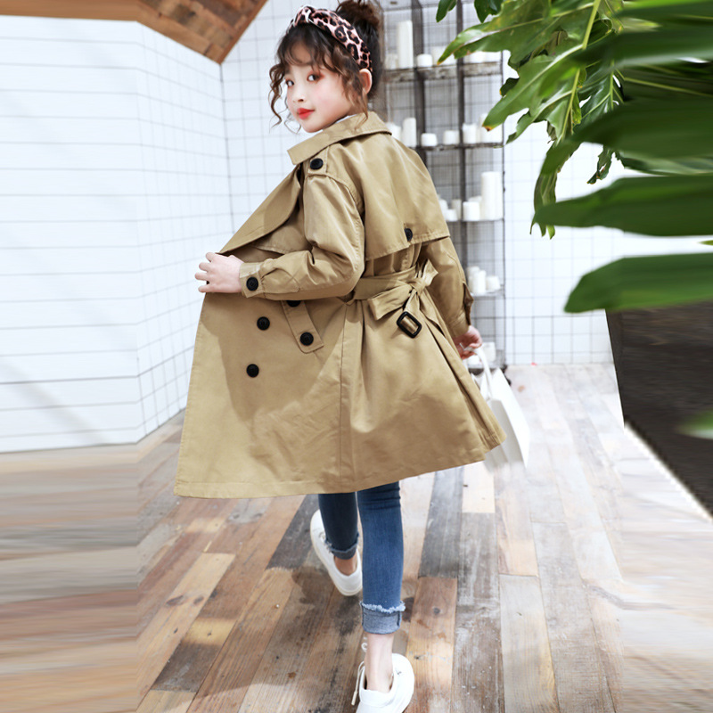Girls' windbreaker Korean version of the new spring and autumn clothes in the big boy's foreign style medium and long version of the children's suit British style little girl's coat