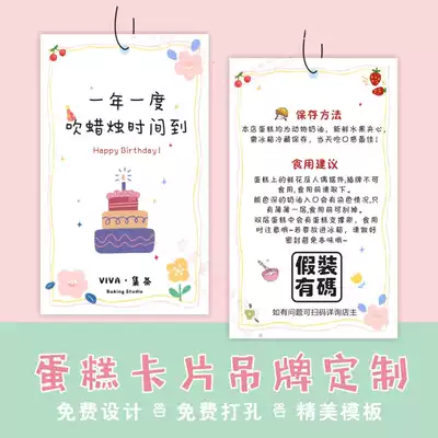 Personality cake tag design printing custom minimalist dessert baking logo decoration tag edible tips card