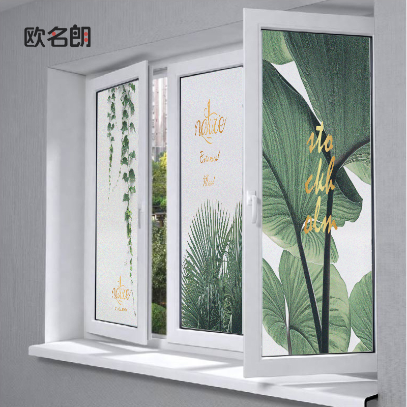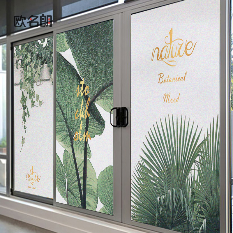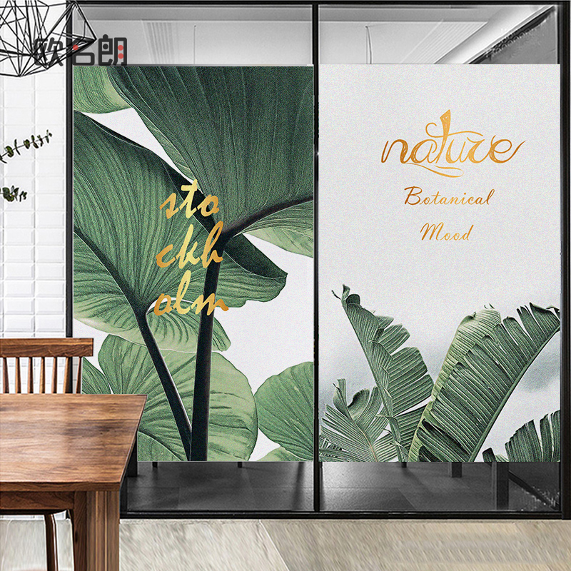 Customized Nordic style window stickers small fresh plant green leaf pattern living room door anti-pylon window flower