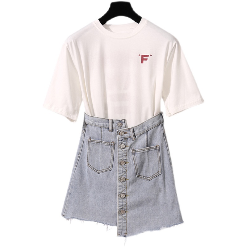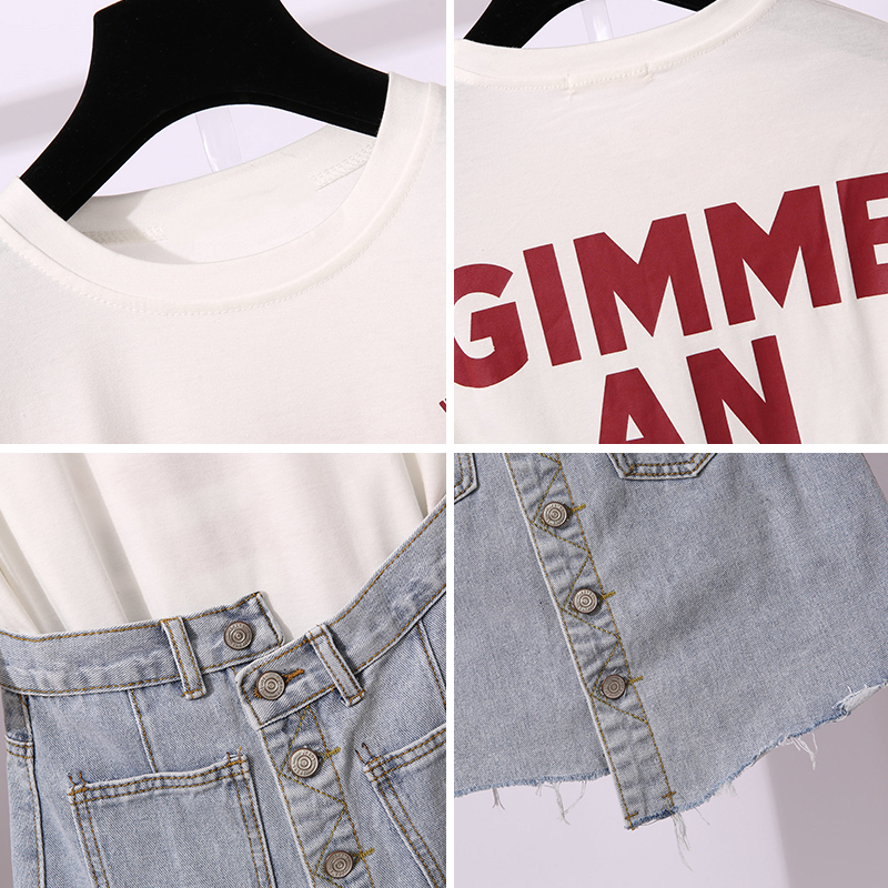 SANDRO VENETA FASHION SUIT Lady 21 Summer New Loose Fashion Temperament T-shirt Denim Dress two sets