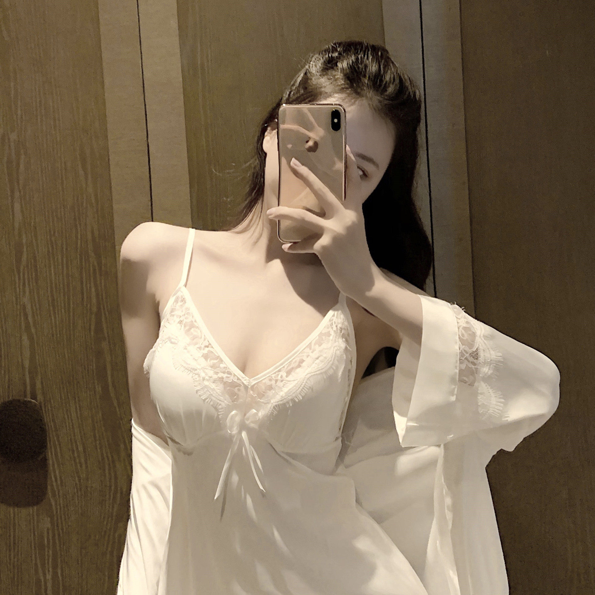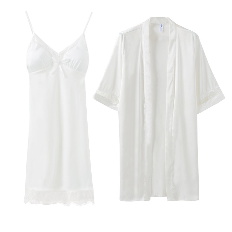 Sleepwear Woman Thin style Sexy Little Chest Harness Ocean Dress Sleeping Gown White Short Skirt Home Conserved Two-piece Suit With Chest Cushion