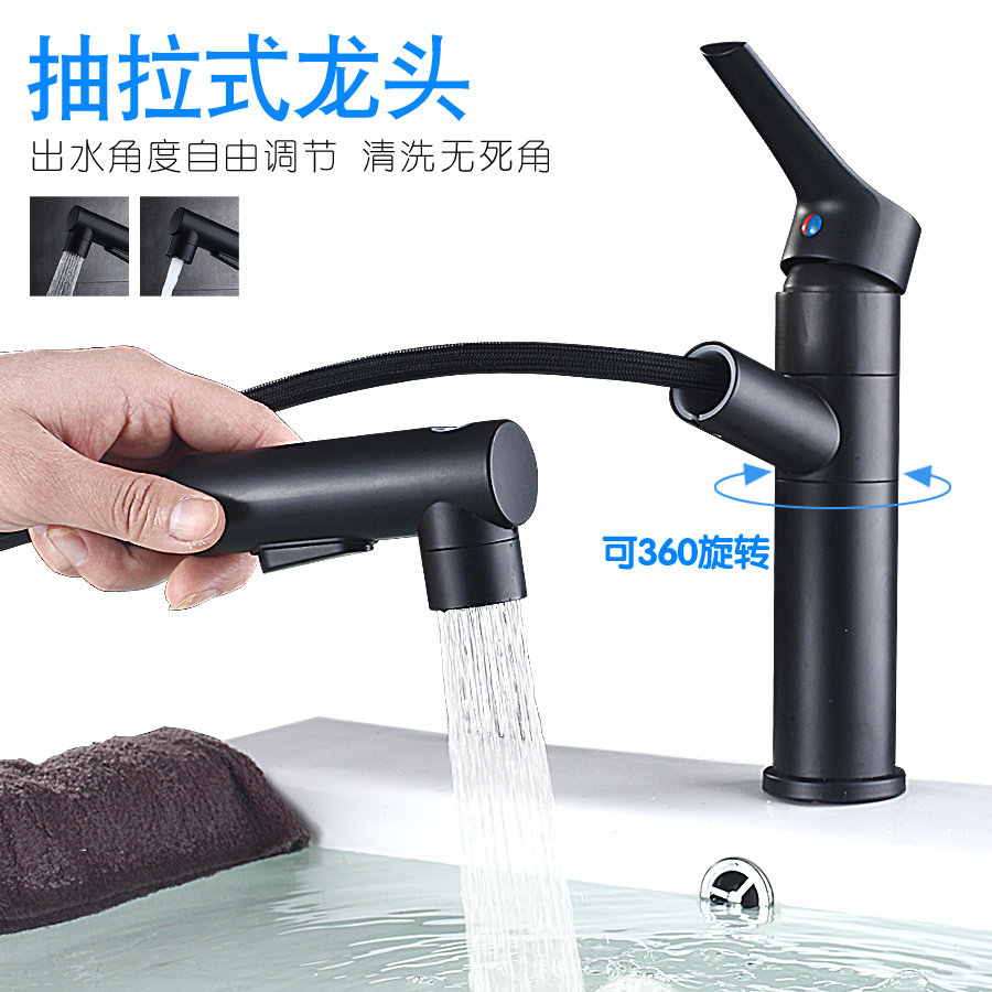 Black rotary pull-out faucet washbasin powder room washbasin hot and cold washbasin faucet washbasin retractable