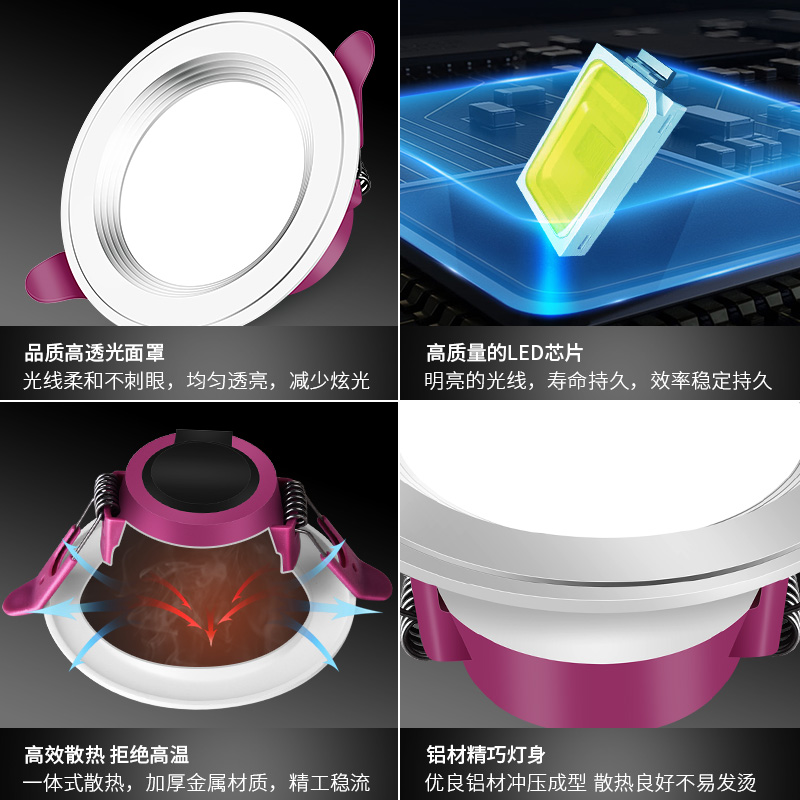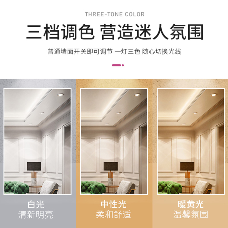 Luxury White Garkin -2 5 inch Three Color Changing Light 5W-hole 6 5-8 5cm (10 only loaded) Pure white -4 - inch white light 12W-bore 11-13cm (10 only fit