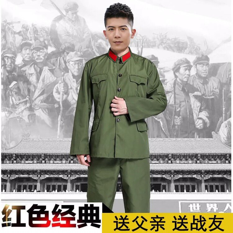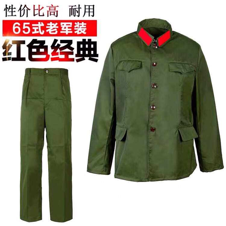 Good quality 65 style old military uniform Fanhua polyester Good nostalgia Army dry clothes Army Green veterans Gathering to commemorate polyester-card suit men