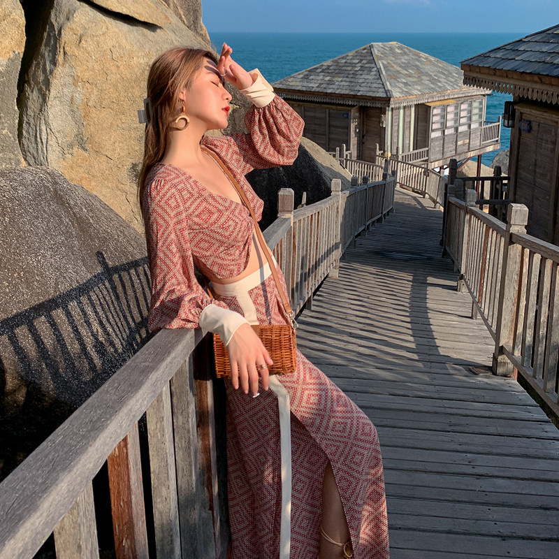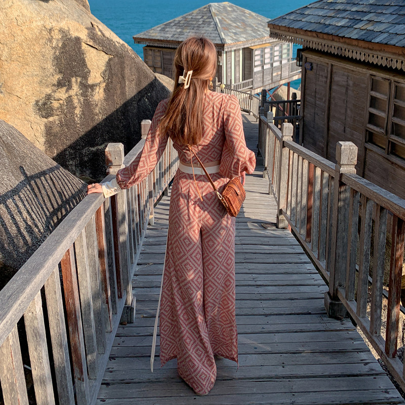 Sanya Travel Wear Hitch Suit With Slim Broadlegged Pants Woman Bohemian Long Skirt Seaside Beach Dresses Two Sets