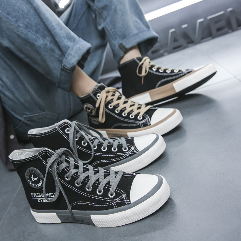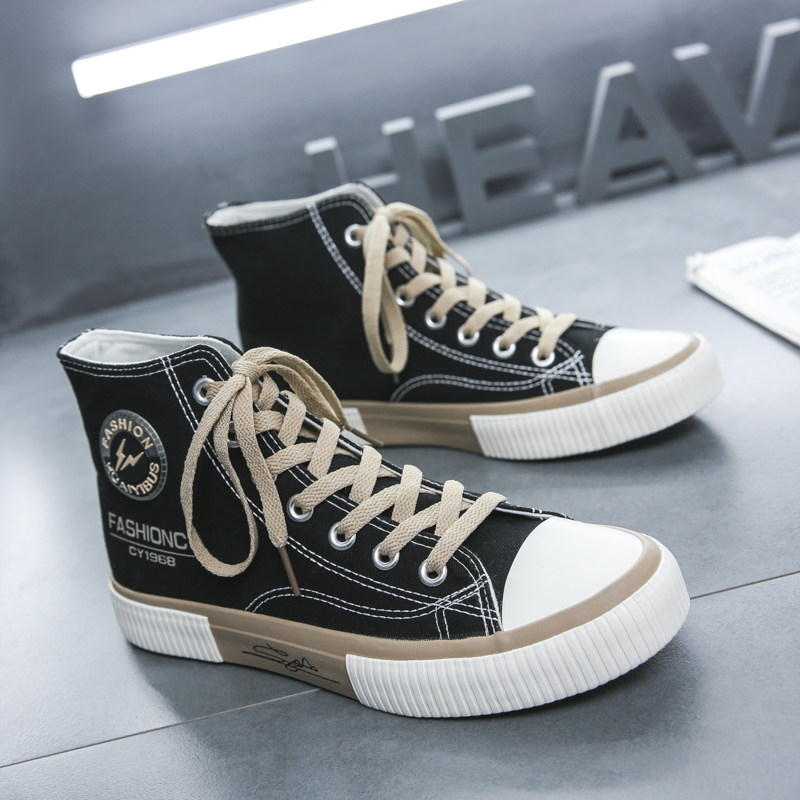 Spring Ins Port Wind Breathable High Cylinder Sails Shoes Men's Korean Version Trends 100 Hitch Students Breathable High Bon Board Shoes Single Shoes