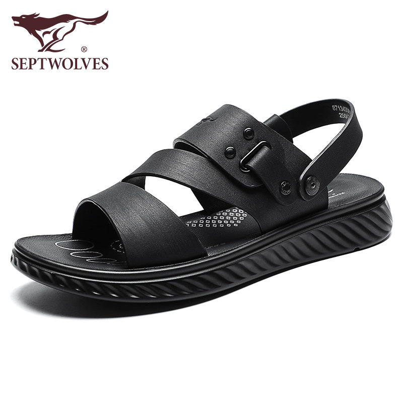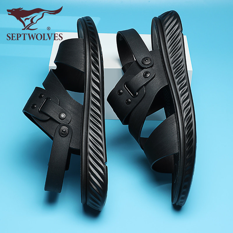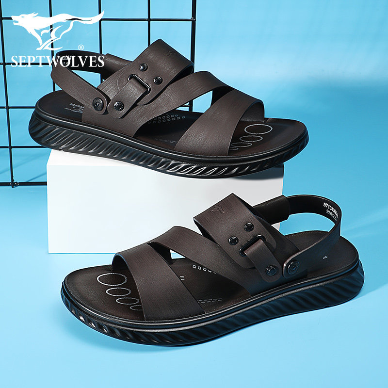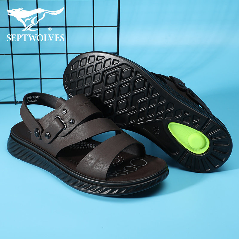 Septwolves leather sandals men's summer outer wear driving beach shoes casual leather breathable men's sandals and slippers