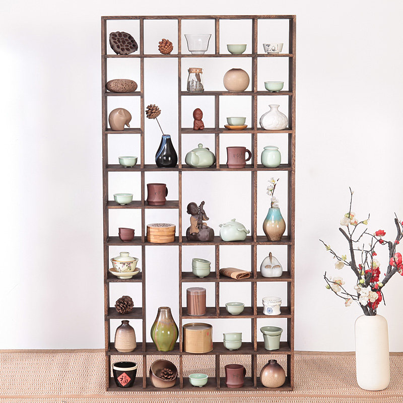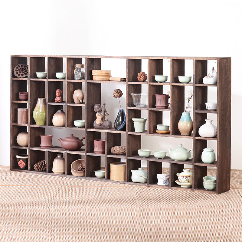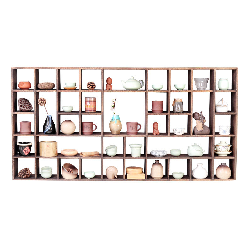 Solid Wood Tea Cup Shelf Bogu Shelf Chinese Wall-mounted Wall Shelving Shelving Teapot Shelf Multi-Treasure Cabinet Tea Set containing shelf