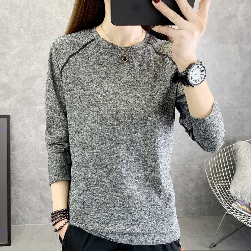 Large size relaxation speed dry coat woman spring autumn long sleeve outdoor climbing clothes fitness yoga round collar elastic sports T-shirt