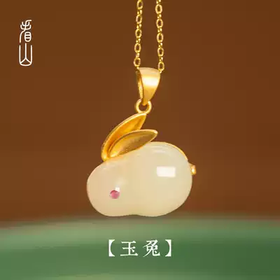 Look at the Mountain) Jade Rabbit) Hetian white jade stone pendant female adopter silver gold inlaid with ancient national wind collarbone necklace Forbidden City New
