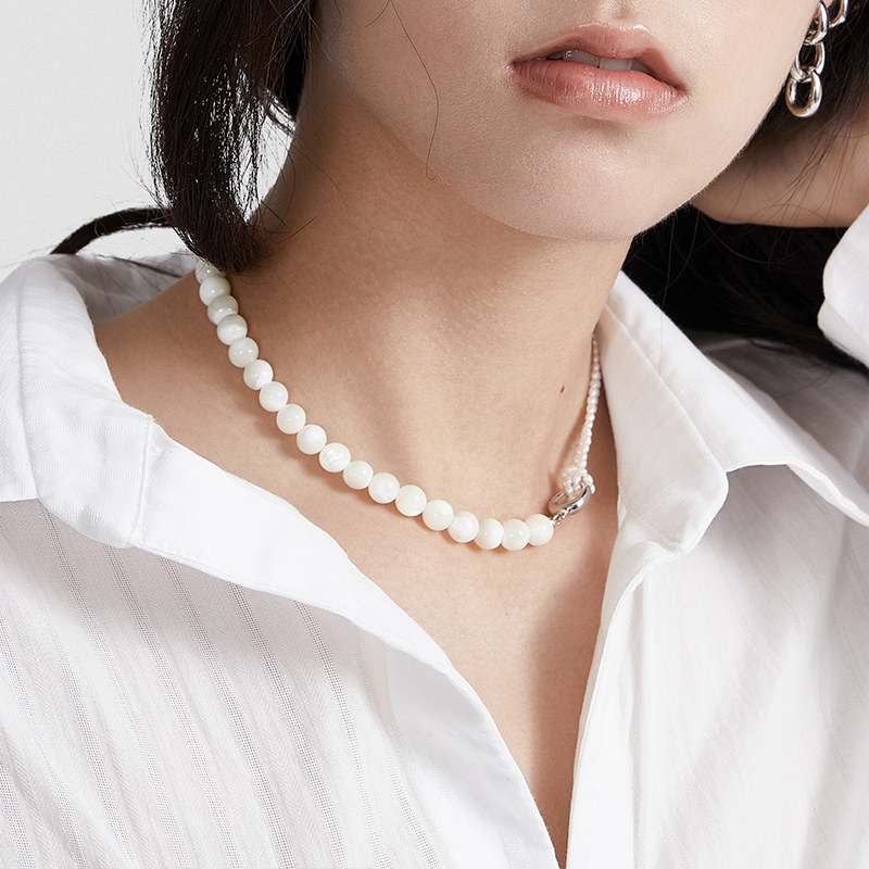THEYKNOW NATURAL PEARL SHELL BEAD SPLICING NECKLACE WOMEN'S NEW COLLARBONE CHAIN INS HIP HOP NECKLACE MEN'S INS