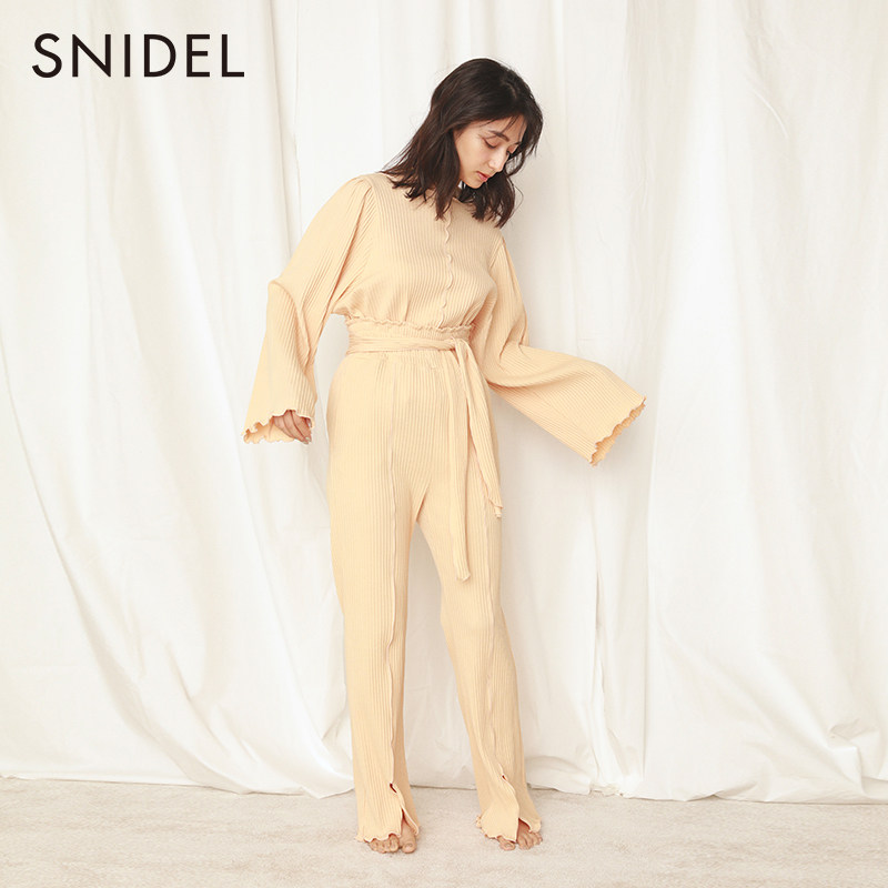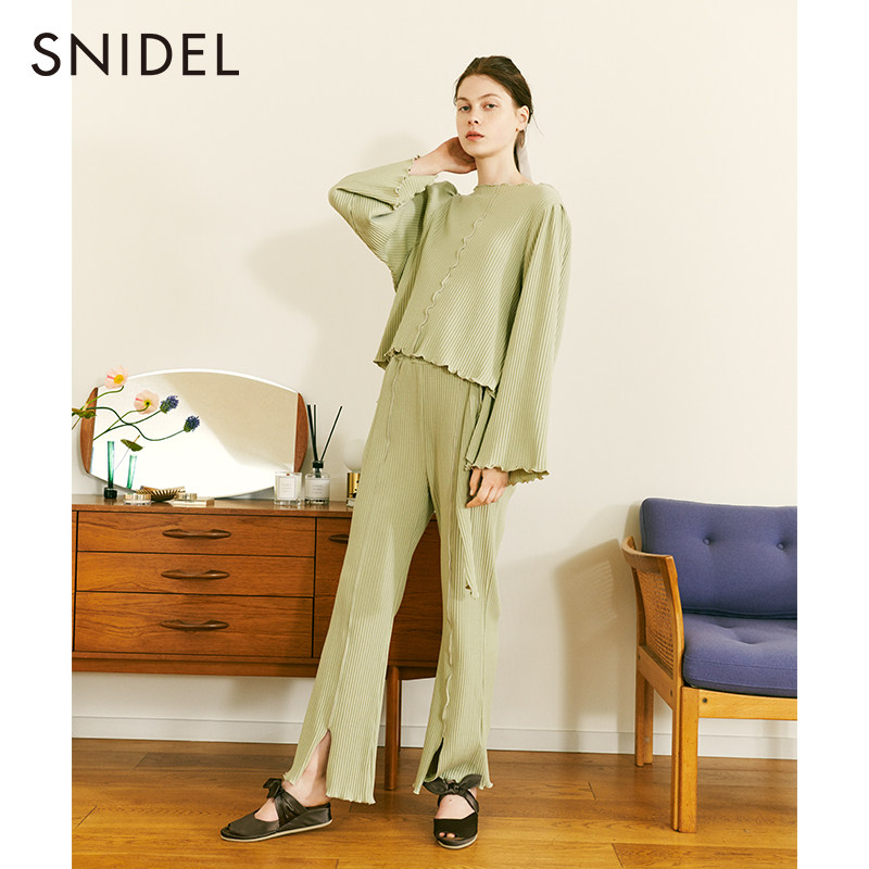 SNIDEL HOME Spring summer belt Agaric Side 100 Folds Fork Knit Long Pants SHCP211036