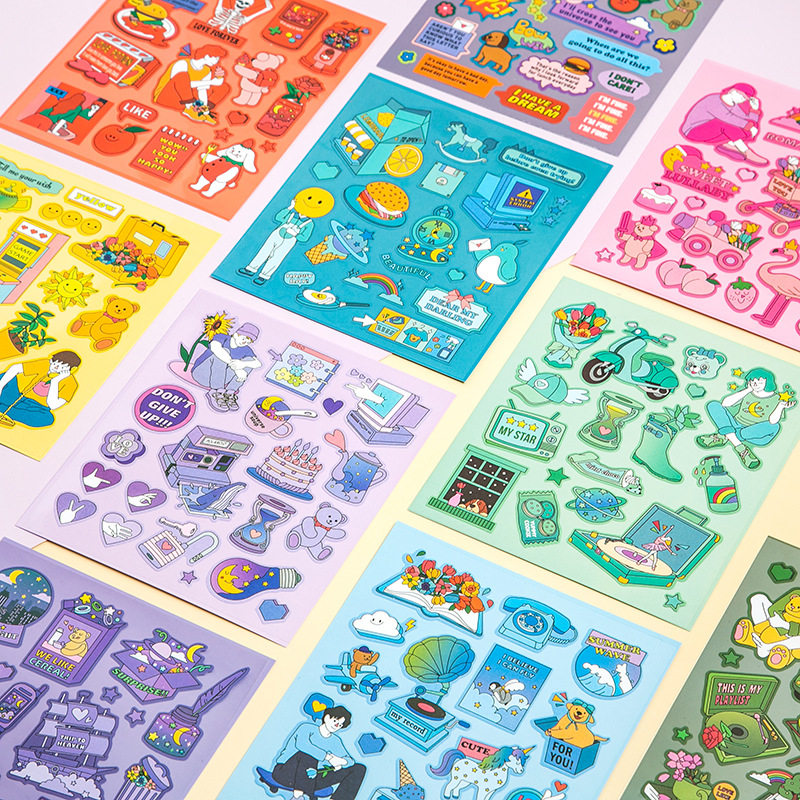 Hour Light Korean Version Cartoon Decoration Diy Cute Sticker hand ledger material adhesive pvc waterproof sticker