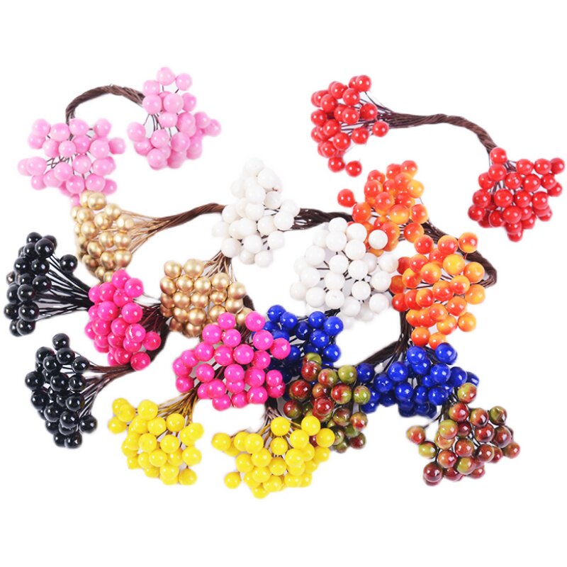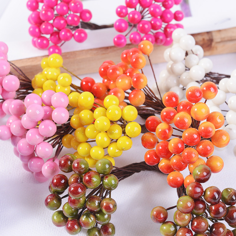 Simulation red gold double-headed berry fortune fruit DIY handmade Christmas wreath wedding wrist flower material red fruit