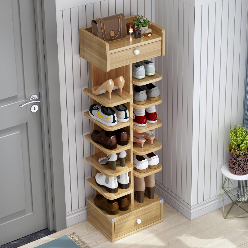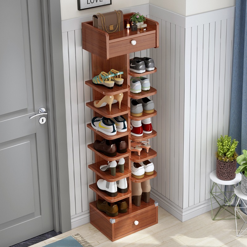 Shoe rack multi-layer home door simple narrow indoor good-looking wooden small shoe cabinet rounded corners 21 new storage net red