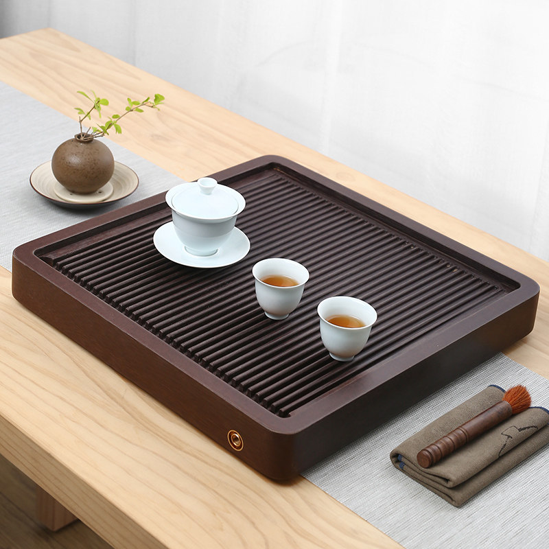 Rentang square electric Wood tea tray German Brown household dry bubble simple tea set big and small tea Taiwan tray tea ceremony