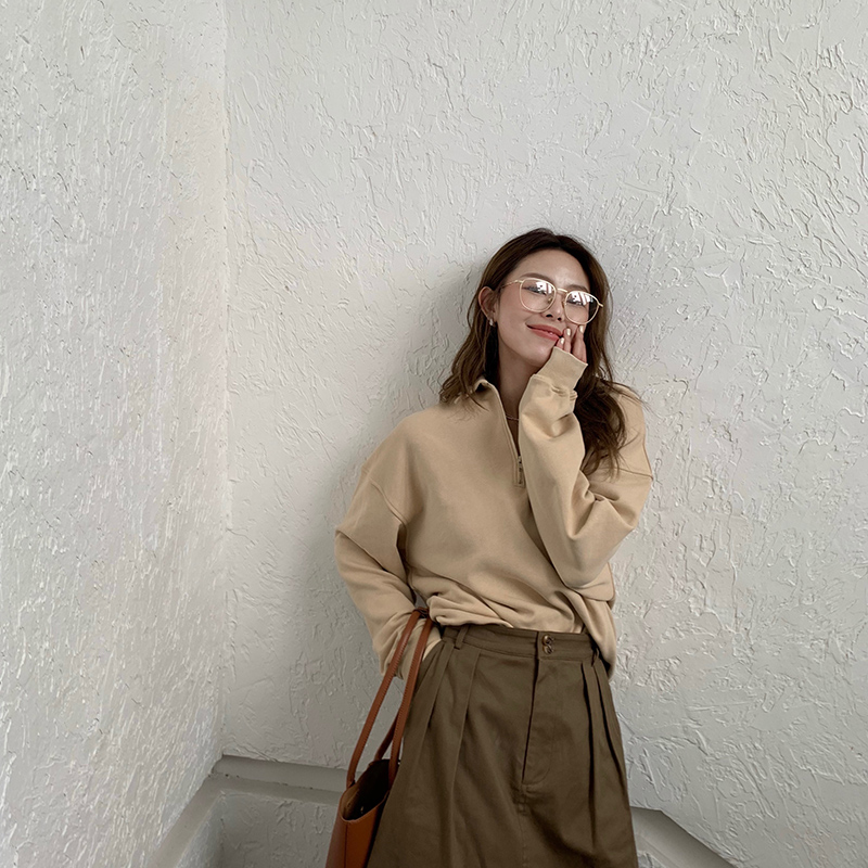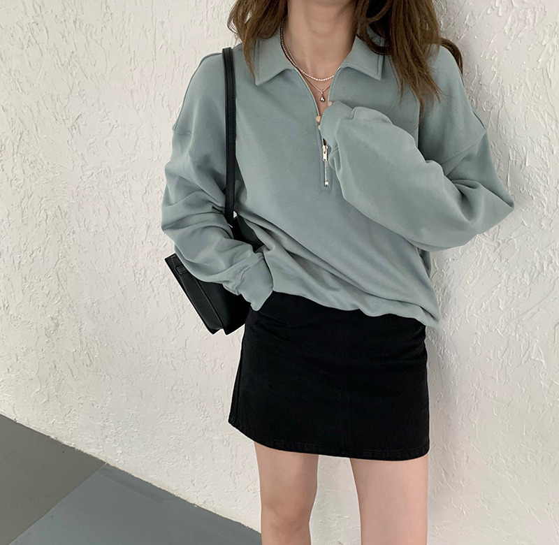 Xiaoxiaola 1937 high comfort bright color lapel zipper pullover sweater 2022 new loose casual top