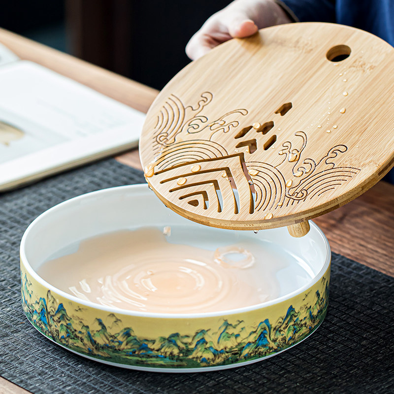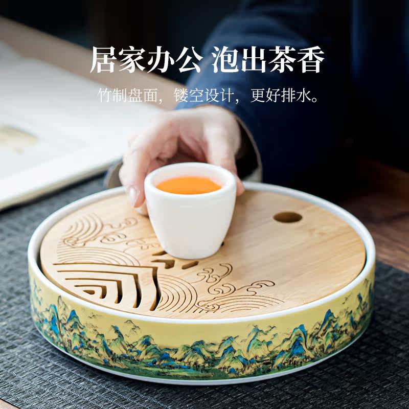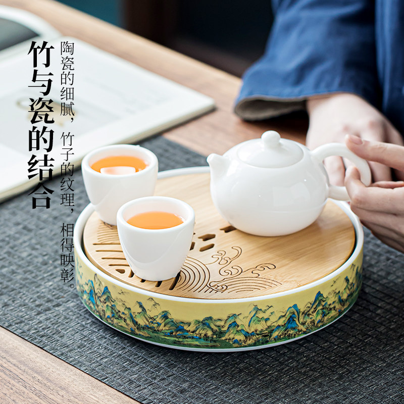 Ceramic Bamboo Tea Tray Small Kung Fu Tea Furniture Household Simple Day Style Dry Bubble Terrace Tea Nursery Tea Sea Light Luxury Modern