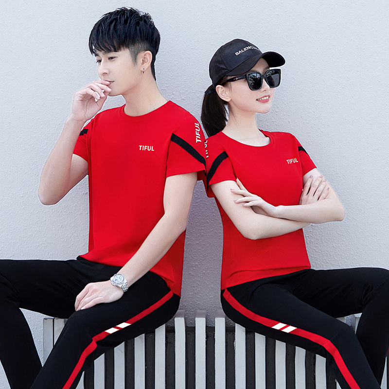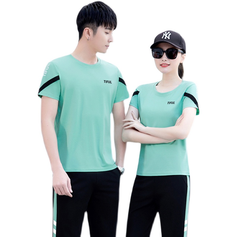 Summer lovers fashion casual short-sleeved trousers Sportswear suit Men's and women's thin two-piece running fitness clothes