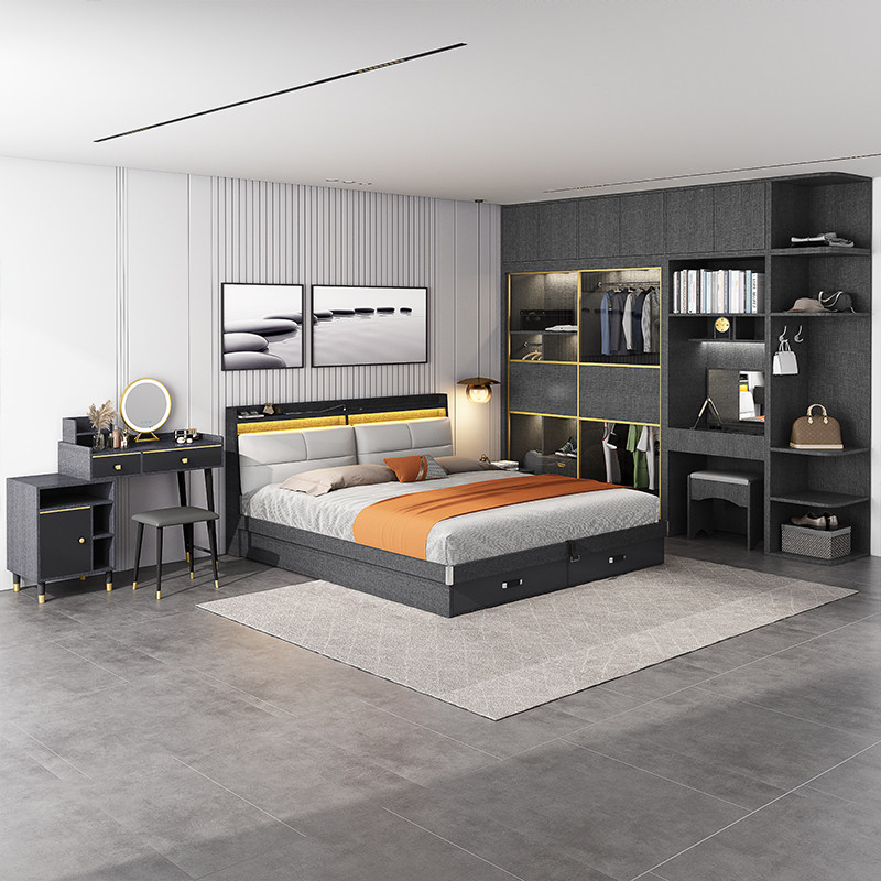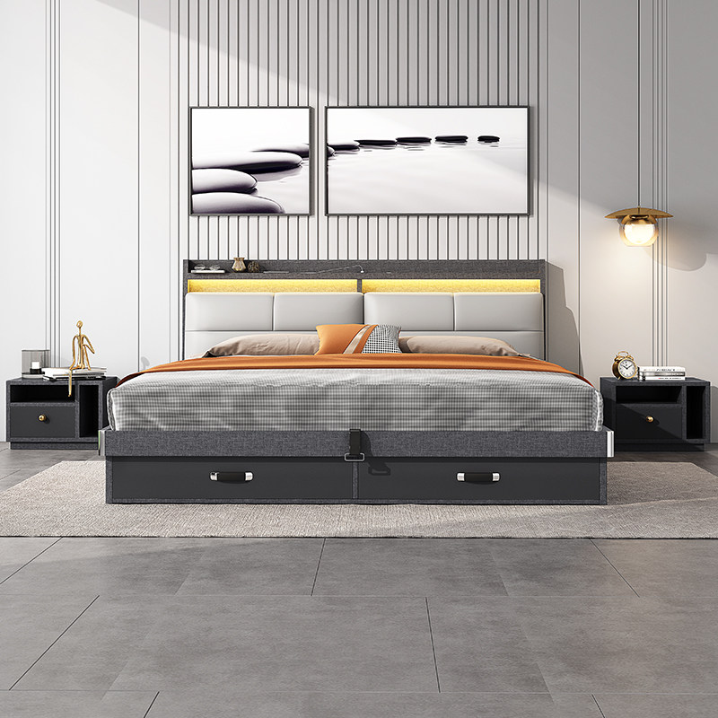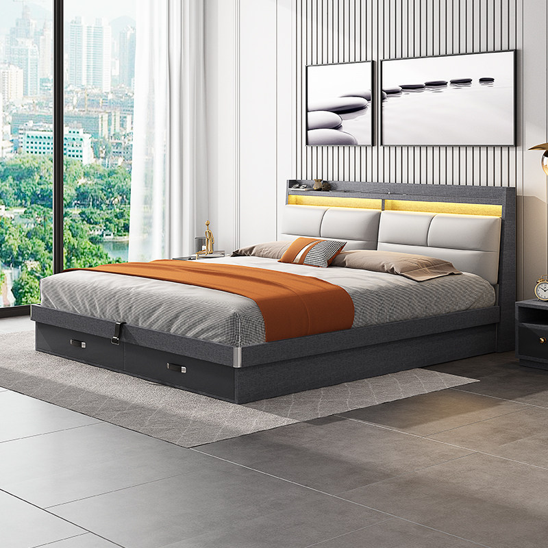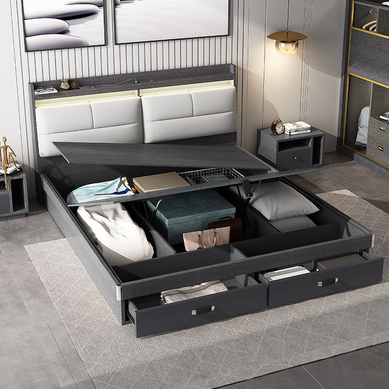 say bed light luxury modern simple 1 8 meters double high box storage bed Nordic 1 5 meters air pressure storage bed master bedroom