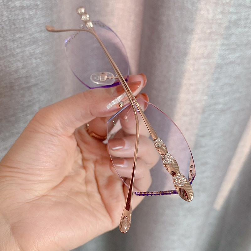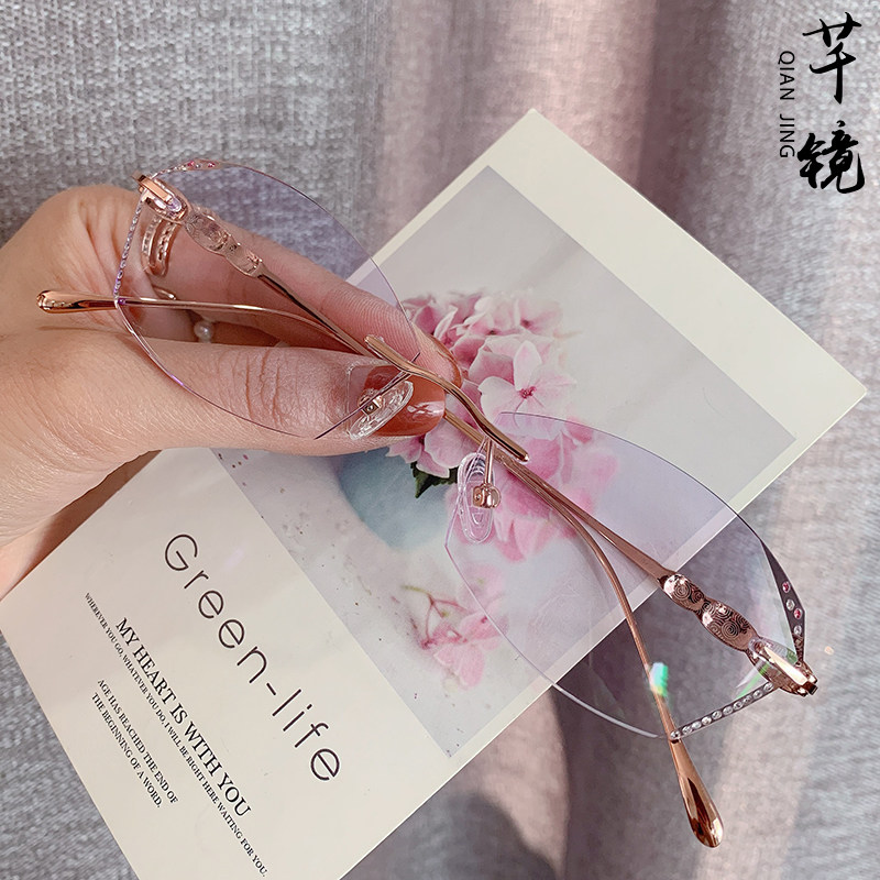 Myopia glasses women can be equipped with a degree of pure titanium frameless diamond trimming ultra-light anti-blue light temperament elegant diamond-set glasses