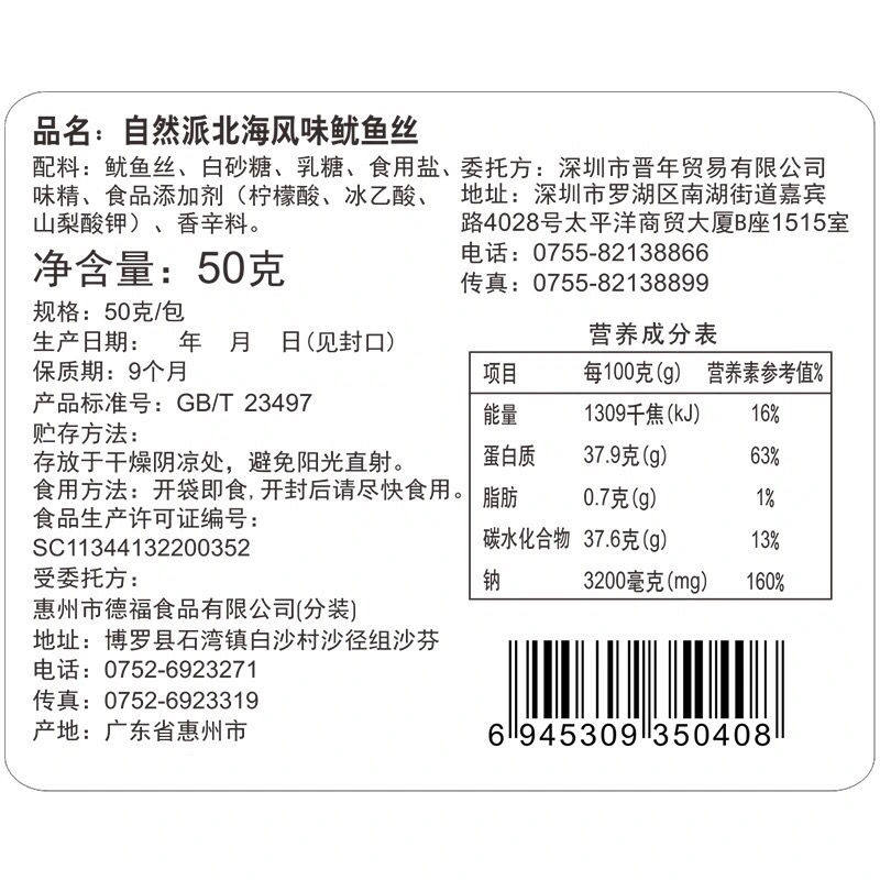 50g charcoal grilled squid fish silk * 1 pack 50g North Sea flavored fish silk * 1 bag 120g charcoal grilled squid * 1 bag 120g North Sea flavored fish silk * 1 bag