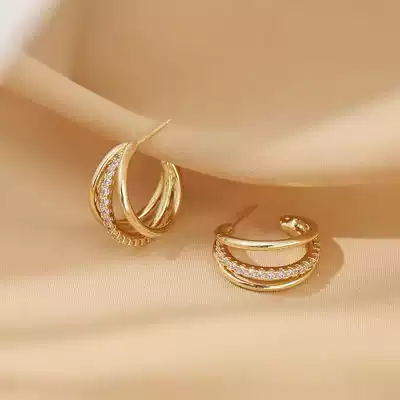 Simple cold wind ear needle female advanced sense golden earrings temperament Joker Net red earrings 20201 New Tide