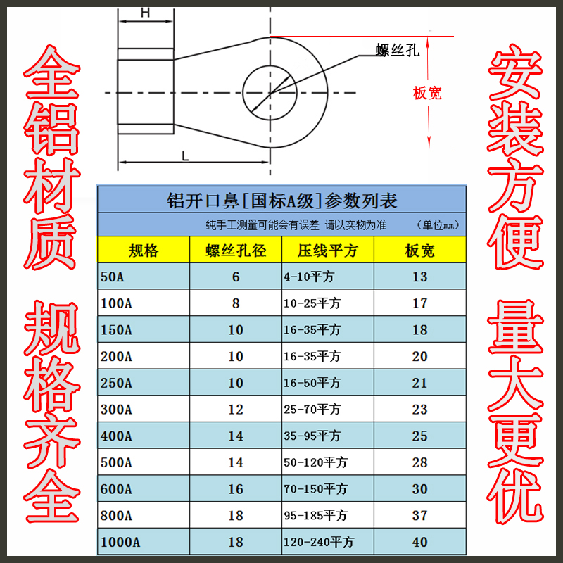 Aluminum wire joint open nose and nose press OT - 50A - 1000A aluminum wire opening wire nose aluminum wire ear terminal