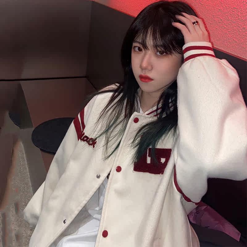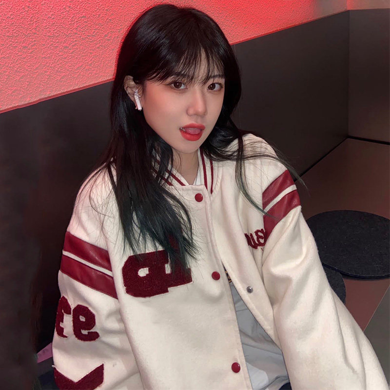 Alphabet baseball uniform female 2022 spring new trendy brand loose bomber jacket ins American street couple jacket