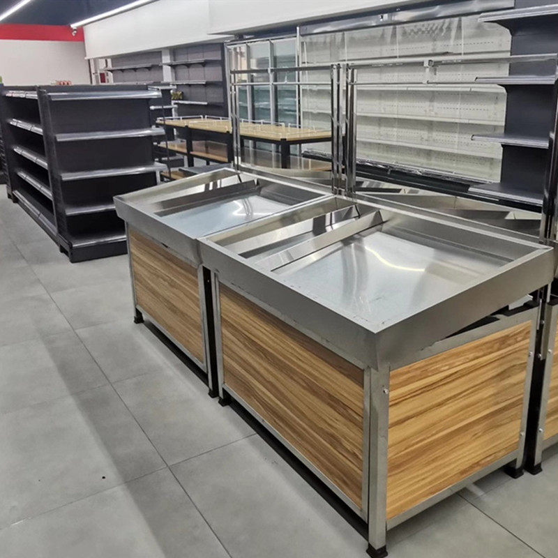 Supermarket fruit and vegetable shelf fruit and vegetable all-steel steel-wood fresh store fruit store frozen table vegetable display shelf